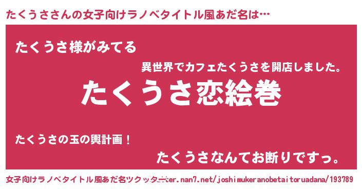 | 男性向けラノベタイトル風あだ名 | 『ノーゲーム・ノータクウサ』 |