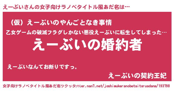 | 意味不明あだ名 | 『えーぶいフォーエバー』『自称えーぶい』 |