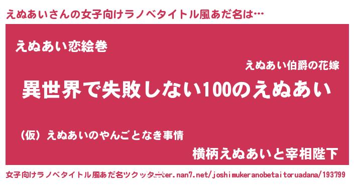 | 男性向けラノベタイトル風あだ名 | 『えぬあいという概念が存在しない退屈な世界 』 |