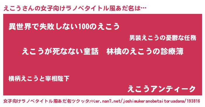 | ファンタジー風あだ名 | 『ヴァルエコーナ』『エコディッシュ』 |