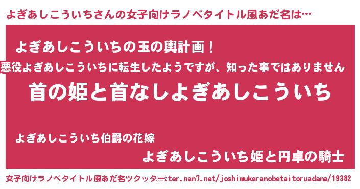 | 男性向けラノベタイトル風あだ名 | 『はたらくよぎあしこういちさま!』 |