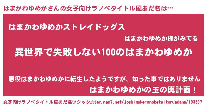 | 男性向けラノベタイトル風あだ名 | 『はまかわゆめかという概念が存在しない退屈な世界 』 |
