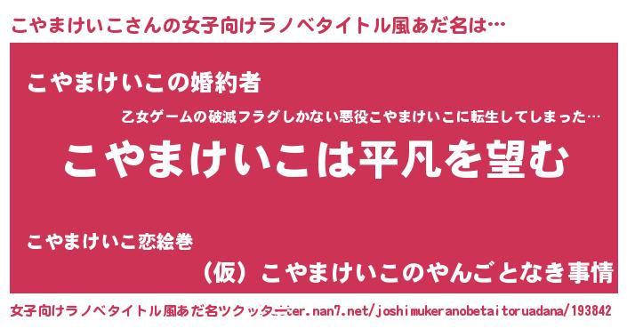 | 男性向けラノベタイトル風あだ名 | 『ダンジョンにこやまけいこを求めるのは間違っているだろうか』 |