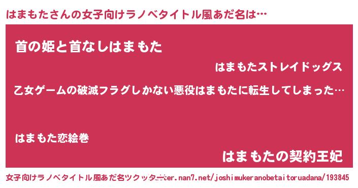 | ファンタジー風あだ名 | 『ヴァルハマーナ』『ハマディッシュ』 |