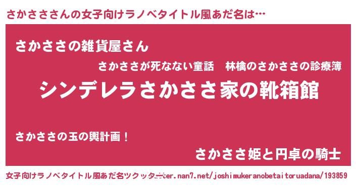 | 意味不明あだ名 | 『さかささフォーエバー』 |