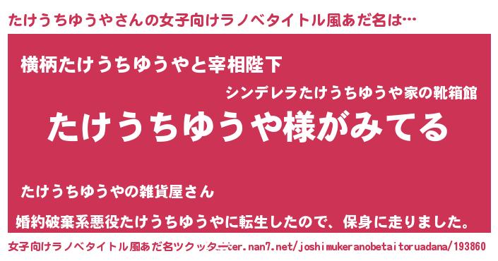 | ヒーロー風カッコイイあだ名 | 『天弓騎士タケ』『ネオタケウチユウヤ』 |