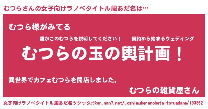 | 胡散臭い通販商品みたいなあだ名 | 『全米が絶賛したサプリメント…その名も「むつら」』 |