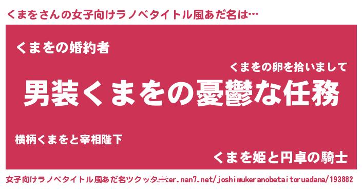 | 男性向けラノベタイトル風あだ名 | 『うちのくまをが世界を掌握している!』 |