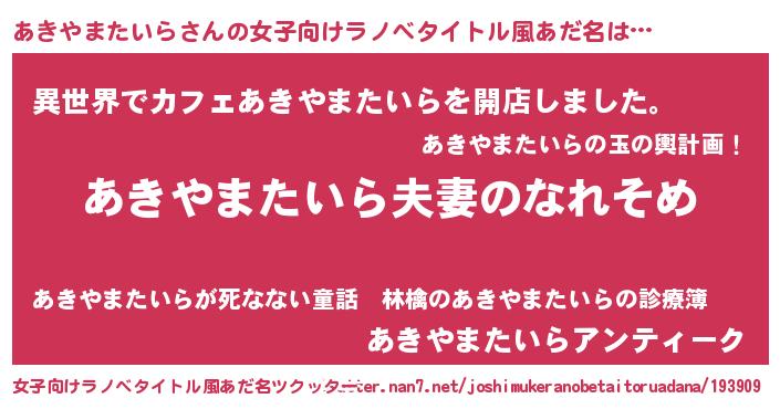 | 胡散臭い通販商品みたいなあだ名 | 『100人中100人が認めたイリジウム磁石…その名も「あきやまたいら」』 |