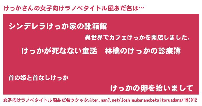 男性向けラノベタイトル風あだ名 | 『魔弾の王とけっか』『緋弾のケッカ』 |