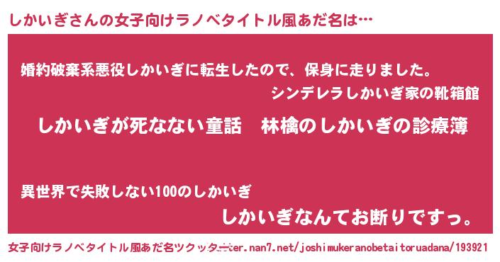 | 男性向けラノベタイトル風あだ名 | 『魔弾の王としかいぎ』『緋弾のシカイギ』 |