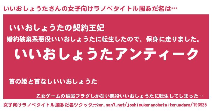 | 男性向けラノベタイトル風あだ名 | 『魔法科高校のいいおしょうた』 |