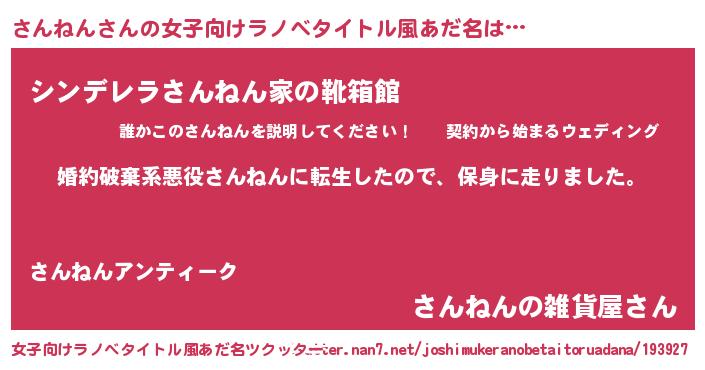 意味不明あだ名 | 『なめこ科さんねん属』『自称さんねん』 |