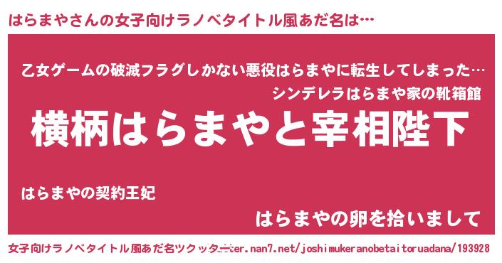 | 意味不明あだ名 | 『住所不定無職はらまや(41歳)』 |