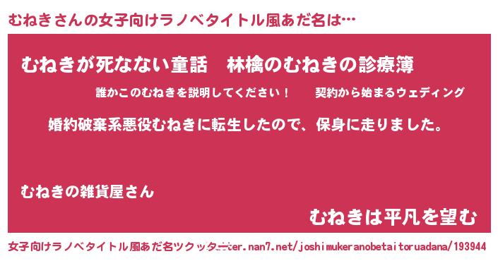 | 男性向けラノベタイトル風あだ名 | 『ムネキスレイヤー』『魔弾の王とむねき』 |