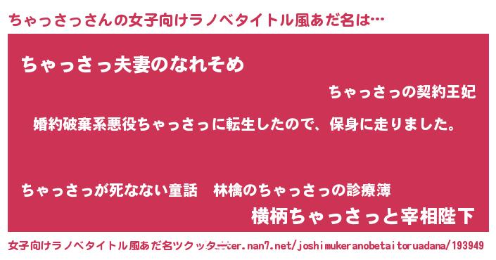 | ヒーロー風カッコイイあだ名 | 『友情の使者ちゃっさっ』『仮面チャダー』 |