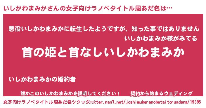 | 男性向けラノベタイトル風あだ名 | 『はたらくいしかわまみかさま!』 |