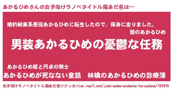 | 男性向けラノベタイトル風あだ名 | 『冴えないあかるひめの育てかた』 |