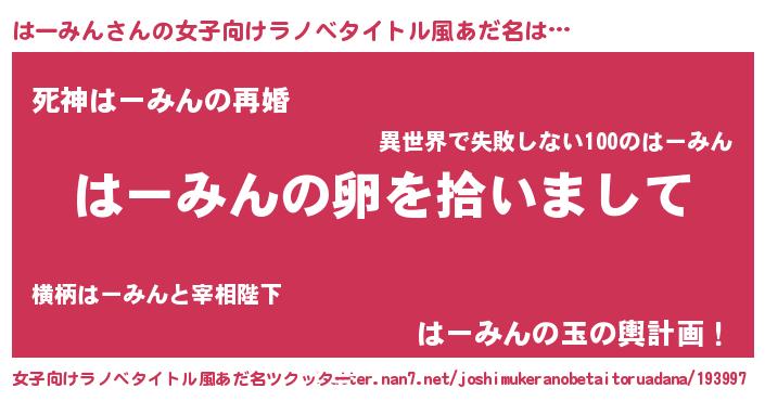 | ヘコむあだ名 | 『はーぷりん』『はーみん(小並感)』 |