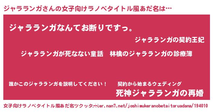 | ヘコむあだ名 | 『ジャラランガ(震え声)』『ジャっふぃ~』 |