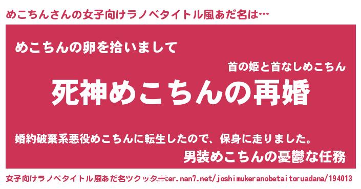 | ヒーロー風カッコイイあだ名 | 『天空の使者めこちん』『黄金騎士メコ』 |