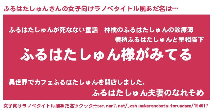 | 男性向けラノベタイトル風あだ名 | 『ふるはたしゅんの嫁は女の子じゃないと思った?』 |