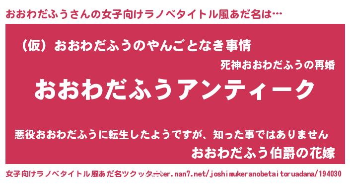 | 意味不明あだ名 | 『自称おおわだふう』 |