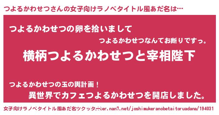 | 男性向けラノベタイトル風あだ名 | 『つよるかわせつに滅ぼされるだけの簡単なお仕事です』 |