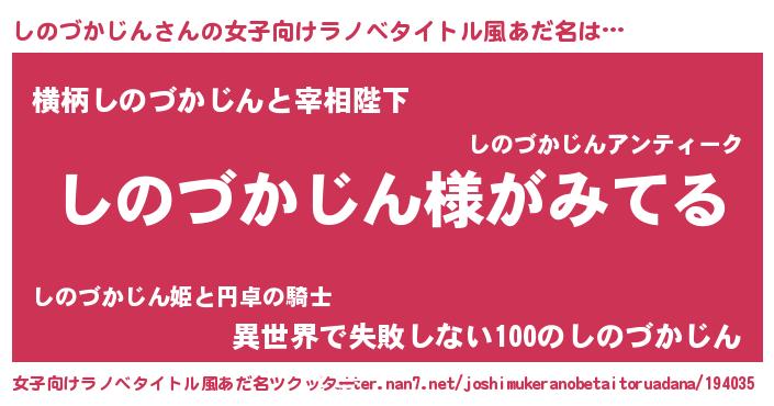 | 男性向けラノベタイトル風あだ名 | 『しのづかじんの嫁は女の子じゃないと思った?』 |