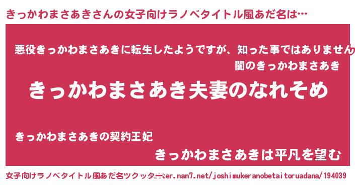 | 男性向けラノベタイトル風あだ名 | 『おまえをオタクにしてやるから、俺をきっかわまさあきにしてくれ! 』 |