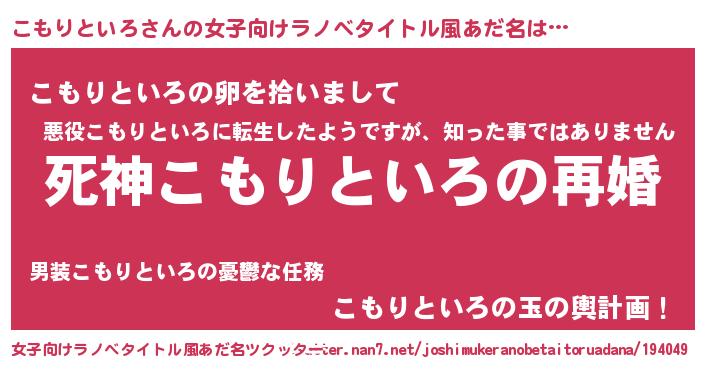 | ヒーロー風カッコイイあだ名 | 『慈愛の使者こもりといろ』 |