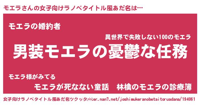| 意味不明あだ名 | 『モエラフォーエバー』『永久保存モエラ』 |