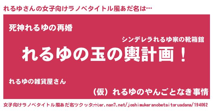 | ヘコむあだ名 | 『れるもー』『酢こんぶ』『れるを』 |