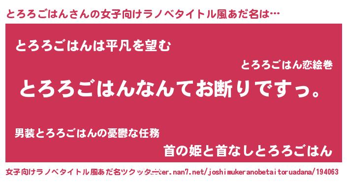 | ヒーロー風カッコイイあだ名 | 『ウルトラ戦士トロロゴハン』 |