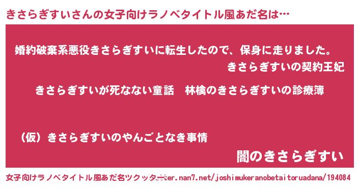 | 意味不明あだ名 | 『住所不定無職きさらぎすい(86歳)』 |