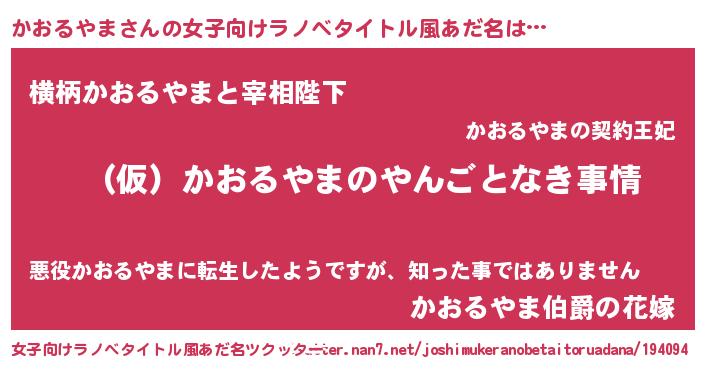 | 男性向けラノベタイトル風あだ名 | 『かおるやまの憂鬱』 |