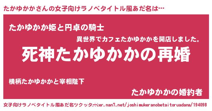 | 男性向けラノベタイトル風あだ名 | 『ノーゲーム・ノータカユカカ』 |