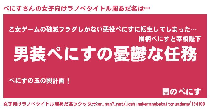 | 男性向けラノベタイトル風あだ名 | 『うちのぺにすが世界を掌握している!』 |
