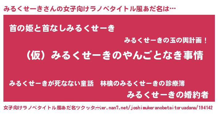 | 男性向けラノベタイトル風あだ名 | 『みるくせーきの憂鬱』 |
