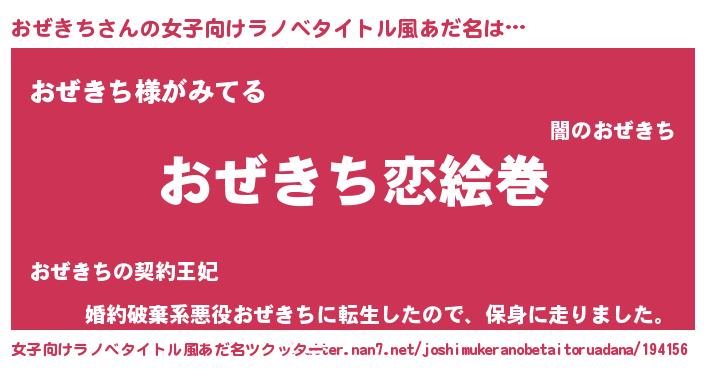 | 男性向けラノベタイトル風あだ名 | 『ノーゲーム・ノーオゼキチ』 |