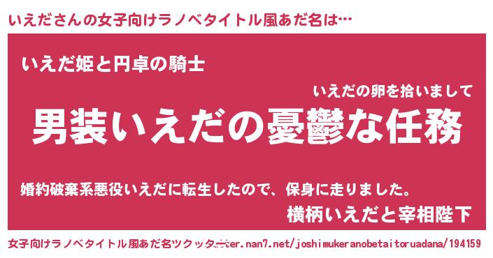 | 胡散臭い通販商品みたいなあだ名 | 『モテモテ間違いなし霊験あらたかなお札…その名も「いえだ」』 |