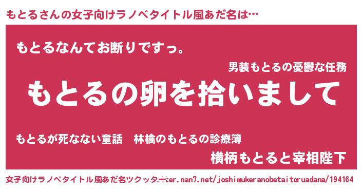 | ヘコむあだ名 | 『もとぷりん』『もとにー』『つくし』 |