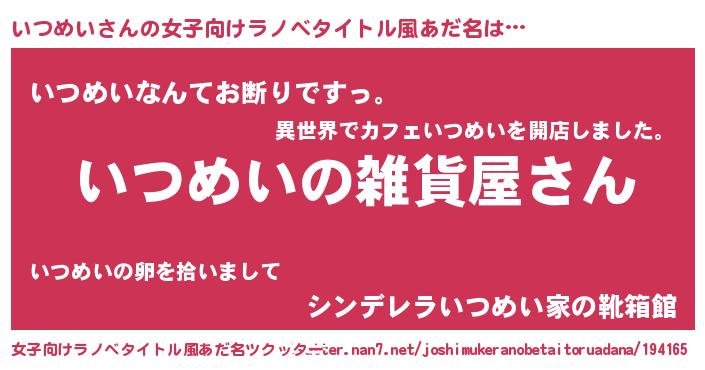 | 男性向けラノベタイトル風あだ名 | 『やはりいつめいの青春ラブコメはまちがっている 』 |