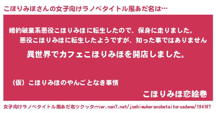 | ヘコむあだ名 | 『こほりみほ(苦笑)』『こほっふぃ~』 |