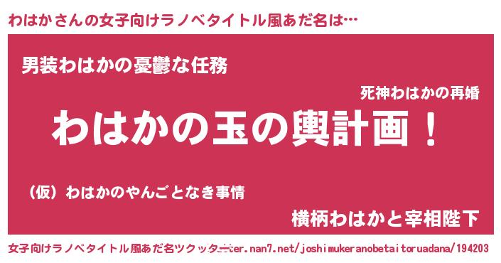 | ヘコむあだ名 | 『わはにゅー』『わはか(笑)』 |