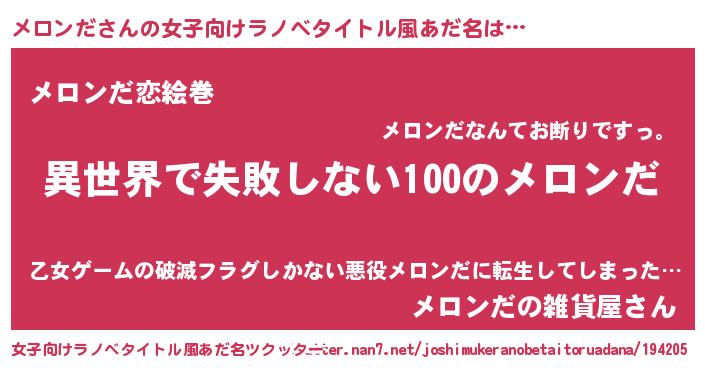 | 男性向けラノベタイトル風あだ名 | 『メロンだという概念が存在しない退屈な世界 』 |