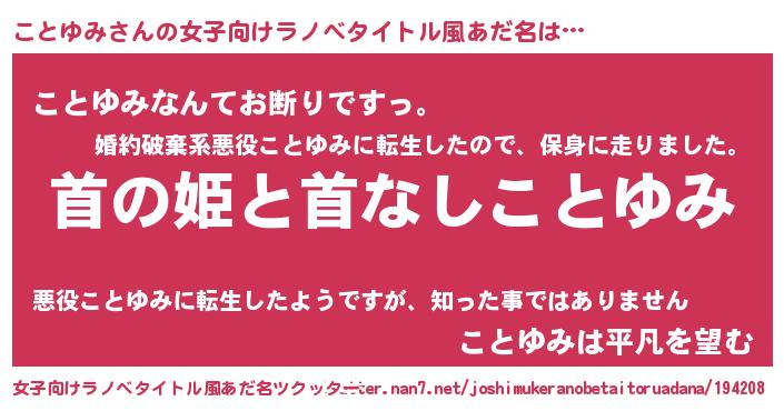 | 意味不明あだ名 | 『自称ことゆみ』『しいたけ科ことゆみ属』 |