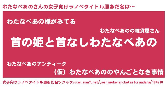 | 胡散臭い通販商品みたいなあだ名 | 『伝統あるネックレス…その名も「わたなべあの」』 |