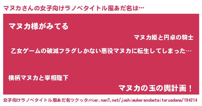 | 意味不明あだ名 | 『住所不定無職マヌカ(3歳)』 |