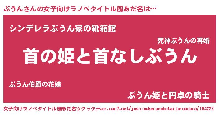 | 男性向けラノベタイトル風あだ名 | 『はたらくぶうんさま!』 |
